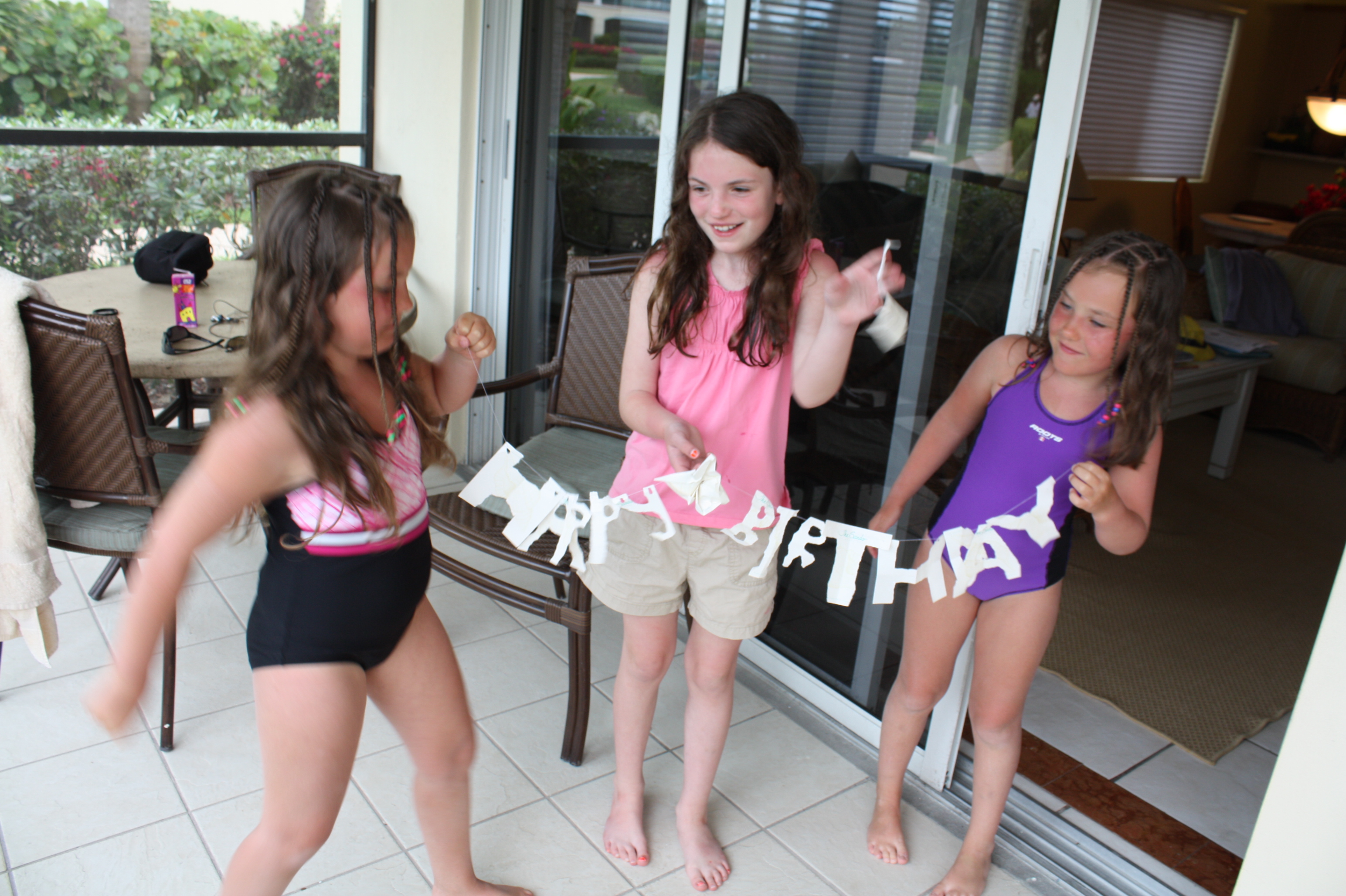 For Rebecca's birthday, Eva and friends painstakingly made these letters by perforating paper with a needle (we didn't have scissors).